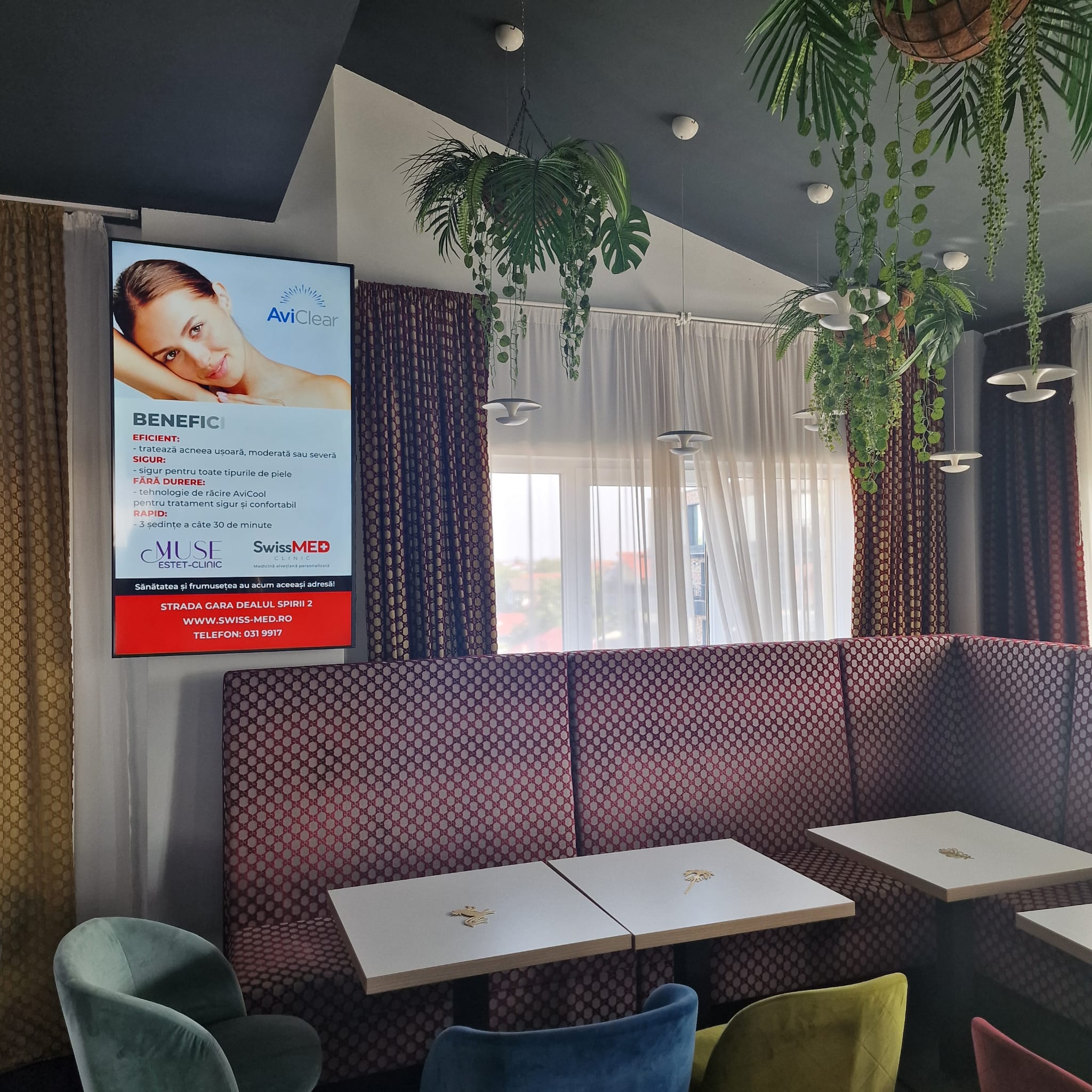- Ecranele din rețeaua noastră sunt amplasate în locații atent selectate – spații comerciale, centre de business, clinici, săli de fitness și alte puncte cu flux constant de vizitatori.